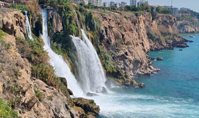 Antalya'da Düden Şelalesi'nin denize döküldüğü noktada yaklaşık 40 metrelik falezlerden düştüğü değerlendirilen kadını arama çalışmaları devam ediyor.