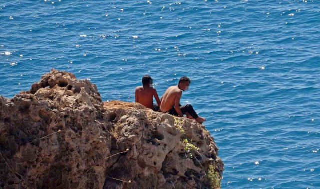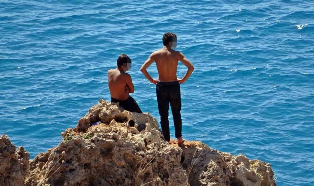 Antalya'da yaklaşık 20 metre yükseklikteki falezlere çıkıp denize atlayış gerçekleştirmek isteyen gençler itfaiye ve polis ekiplerini alarma geçirdi. Uzun süre dil dökülmesine aldırış etmeyen gençler, polisin, 'atlarsan karakola götürürüm' sözüyle bulunduğu yerden ayrılıp sahil kısmına indi. Gençlerden biri bu sefer ekiplere, 'Bir kere atlayacaktım' diyerek de sitemde bulundu.