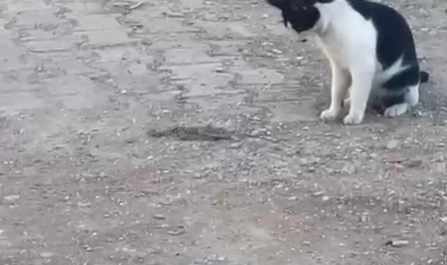 Kurtalan ilçesi Sümer Mahallesi'nde ilginç bir olay yaşandı. Yol üstünde yılanla karşılaşan kedi, bir süre yılanla oynadı. Daha sonra patisiyle yılanın kafasına vuran kedi, ardından hayvanı ağızlayıp uzaklaştı. O anlar bir vatandaşın cep telefonu kamerasına yansıdı.