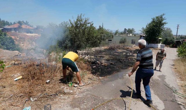 Farklı noktalarda çıkan otluk ve ağaçlık yangını evlere birkaç metre kala söndürüldü
