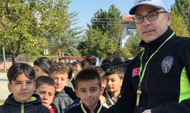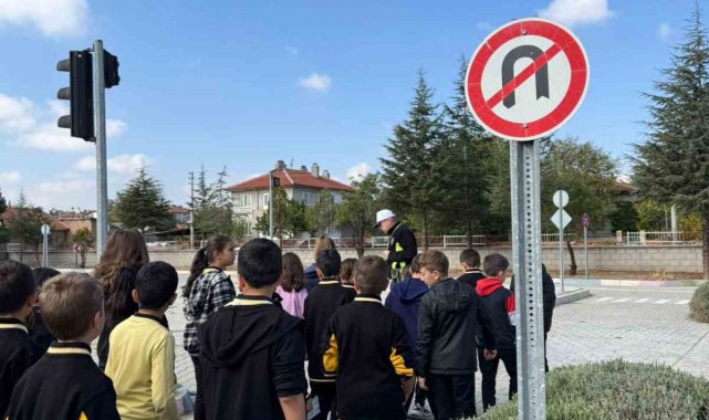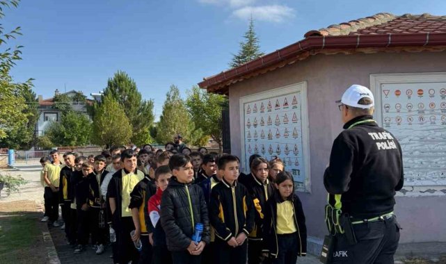 Afyonkarahisar'da polis ekiplerince Fatih Ortaokulu'nda 75 öğrenciye 'Trafik Güvenliği' konulu uygulamalı eğitim verildi.