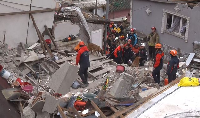 Fatih'te çöken binada enkaz altında kalanları kurtarma çalışmasına hassas burunlu köpekte katıldı.