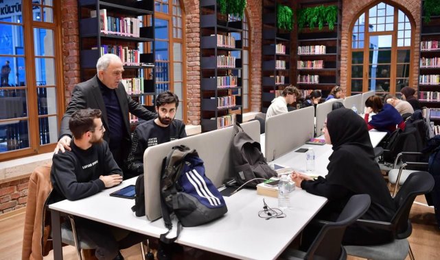 Darüşşafaka Kütüphanesi'nde öğrencilerle bir araya gelen Başkan Turan, kitapların ve kütüphanelerin gençlere açtığı ufuklara dikkat çekerek, "Bir yanda spor sahalarında ter döken, azimle çalışan gençlerimiz; diğer yanda kütüphane sıralarında hedeflerine odaklanan öğrencilerimiz var. Bu iki tabloyu birlikte düşündüğümüzde Fatih'in yarınlarının ne kadar güçlü olacağını görebiliyoruz" şeklinde konuştu.
