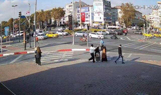 Güvenlik kamerasına yansıyan görüntüde Aksaray yönüne seyir halinde olan otomobil ile motosikletin çarpıştığı, motosiklet sürücüsünün çarpışmanın etkisiyle yere düştüğü görülüyor.