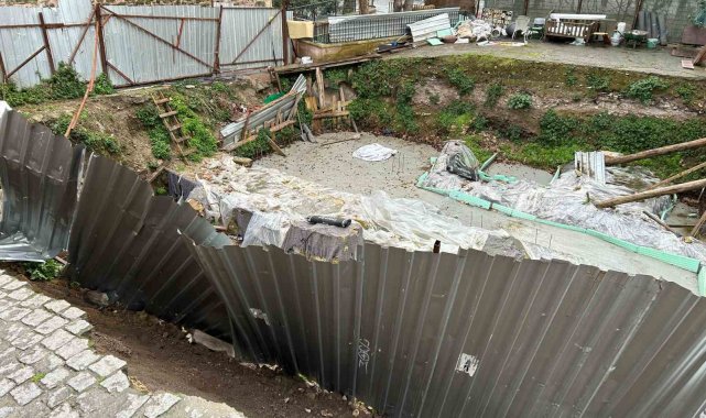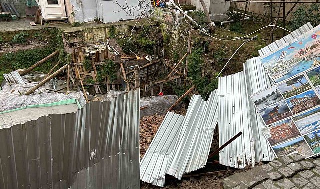 Fatih Sultanahmet'te şantiye alanında meydana gelen toprak kaymasının ardından yol çöktü. Çökme anı güvenlik kamerasına yansırken çöken yol dron ile görüntülendi.