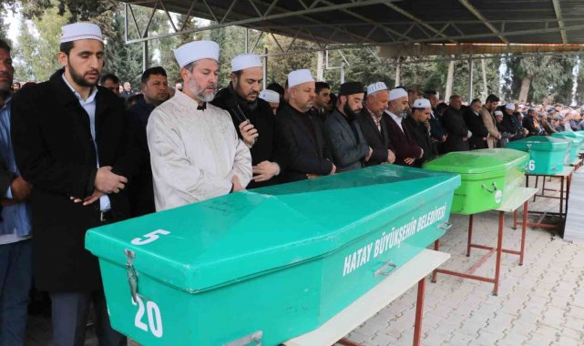 Hatay'da servis minibüsünün park halindeki tıra çarptığı kazada hayatını kaybeden 6 kişi, kılınan cenaze namazının ardından defnedildiler.