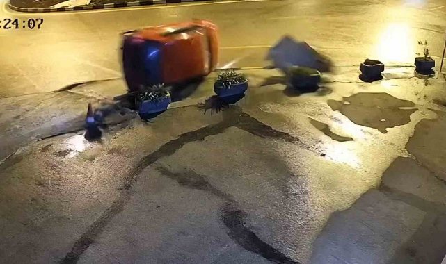 Feci kazanın yaşandığı anlar çevredeki işyerlerinin güvenlik kameralarına yansıdı. Görüntülerde hızla kavşağa giren otomobilin virajı alamayarak yol kenarında çöp kutusuna çarptığı ve ters döndüğü görüldü. Aracın peşindeki polislerinde de kazayı görünce hemen yaralıların yardımına koştuğu yer aldı. Polislerle birlikte çevredeki vatandaşların da yardım için kaza yerine gelmesi de görüntülerde yer aldı.