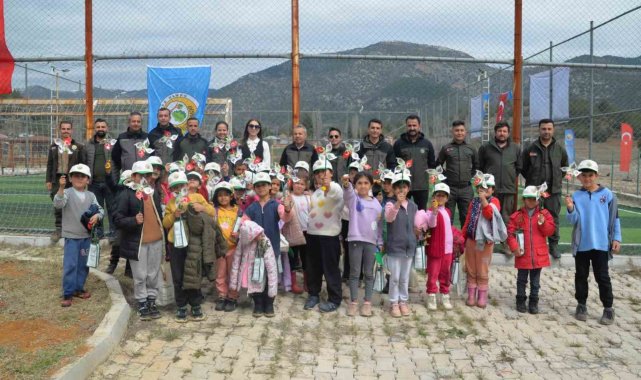 Orman İşletme Müdürlüğü personelleri, çocuklara fidanların dikimiyle ilgili bilgiler de verdi.