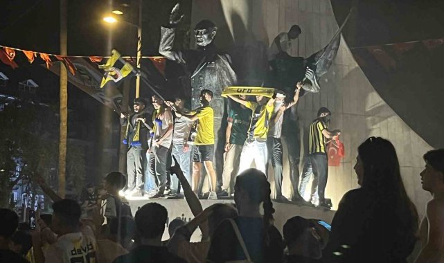 Fenerbahçe'nin şampiyonluğu meşaleler ve bayraklarla kutlandı
