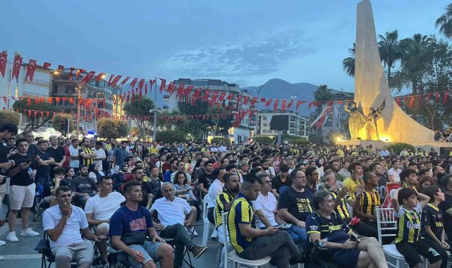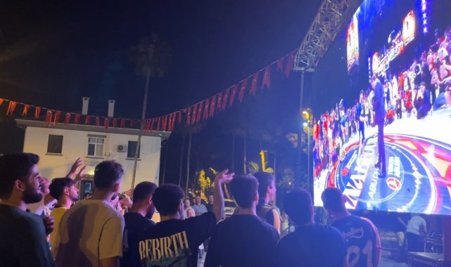 Alanya'daki Fenerbahçeliler, Euroleague'deki şampiyonluk maçını Alanya Belediyesi'nin kurduğu dev ekrandan takip etti.