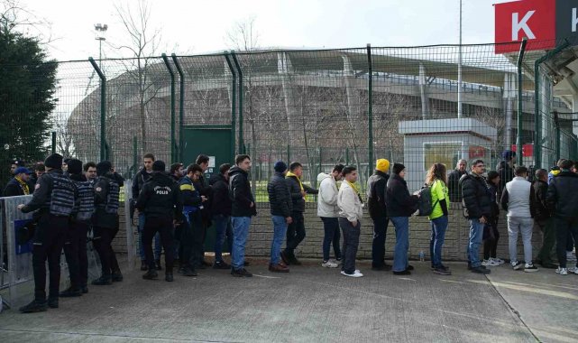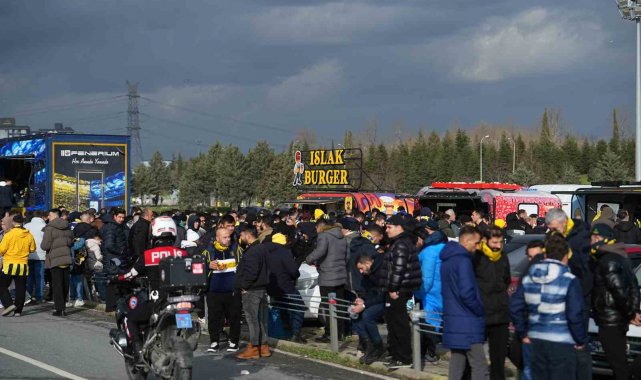 Fenerbahçeli taraftarlar stat etrafında yaptıkları beste ve tezahüratlarla derbiye hazırlanırken, yakılan meşale ve açılan bayraklar renkli görüntüler oluşturdu.