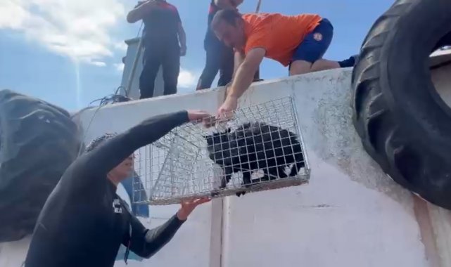 Sahil Güvenlik Batı Marmara Grup Komutanlığı ekipleri tarafından, feribot iskelesi bacağında mahsur kalan kediyi kurtarmak için operasyon düzenlendi. Dalış Emniyet Güvenlik ve Arama Kurtarma Timleri (DEGAK) tarafından kurtarılan kedi, itfaiye ekiplerine teslim edildi.