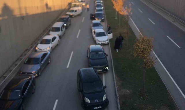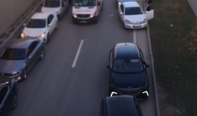 Araçların ambulansın geçişini beklediği o anlar cep telefonu kamerasıyla kaydedildi.
