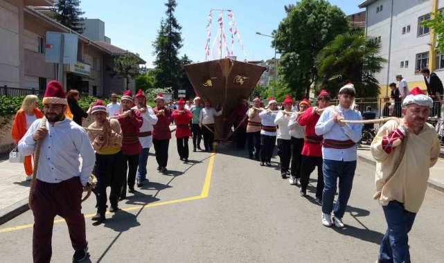 Ordu'da, İstanbul'un Fethi'nin 572. yıl dönümü dolayısıyla düzenlenen programda, 10 metre uzunluğundaki maket gemi karadan yürütüldü.