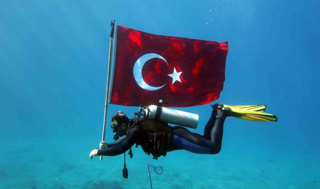 Fethiye Dalış Merkezi'nin organizasyonuyla düzenlenen etkinlik, dalgıçların su altındaki birlikteliğiyle anlam kazandı. Dalış Okulu eğitmeni Önder Diktaş Türk bayrağını dalgalandırırken, dalgıçlar Burkay Kayıran, Berkay Çetin, Elif Cemre Yiğit ve Berat Hünkar Odabaş ise ellerinde Türk bayrakları ile 'geçiş' yaptı.
