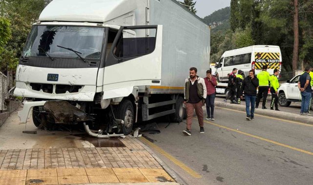 Fethiye'de freni patlayan kamyon, öğrenci servisine çarptı