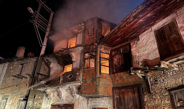 Muğla'nın Fethiye ilçesinde çıkan yangında iki katlı ev alevlere teslim oldu.