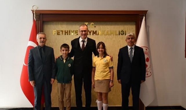 Fethiye Yunus Nadi İlkokulu öğrencileri, 23 Nisan Ulusal Egemenlik ve Çocuk Bayramı nedeniyle Kaymakam İsmail Hakkı Ertaş'ı makamında ziyaret etti. Öğrenciler, bir günlüğüne Fethiye Kaymakamı oldu.