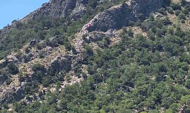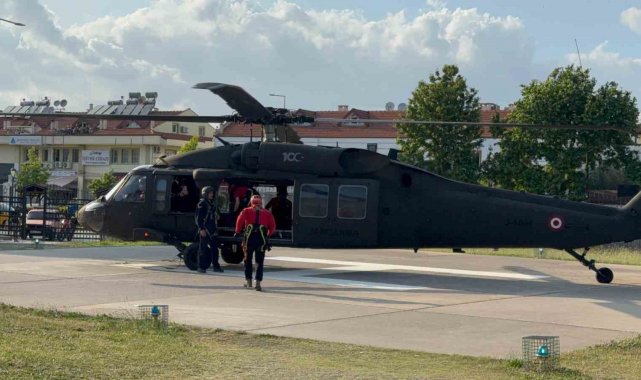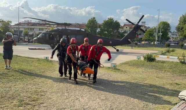 Fethiye'de paraşütle kayalıklara düşen turist askeri helikopterle kurtarıldı