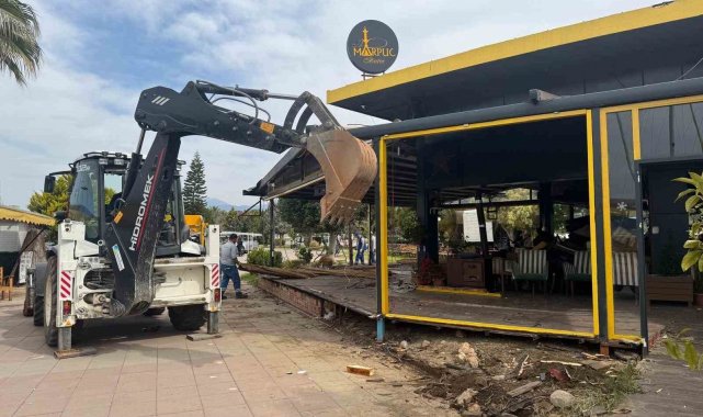 Muğla'nın Fethiye ilçesinde ikinci etap sahil bandında bulunan restoran ve kafelerin kaçak olarak yapılan bölümleri için yıkım çalışmaları başlatıldı.
