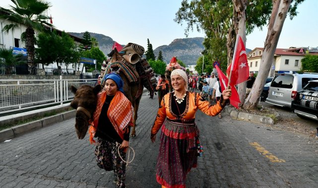 Fethiye'de 3 gün süren yürüyüşte Yörükler, 100 kilometrelik güzergahı geleneksel kıyafetleriyle at, eşek ve develer eşliğinde kat etti.