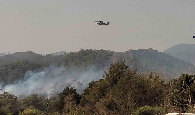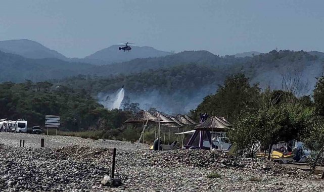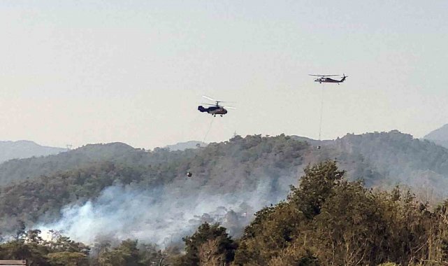 Alevlerin önünün kesilmesinin ardından uçaklar bölgeden ayrılırken, helikopterler havadan soğutma çalışmasına devam etti.