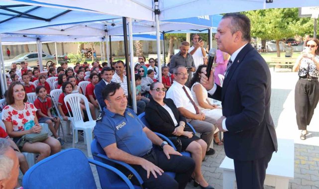 Saygı duruşu ve İstiklal Marşı ile başlayan törende, okuldan mezun olan 5. sınıf öğrencisi, okula yeni başlayan 1. sınıf öğrencisine çiçek takdim etti. Öğrencilerin hazırladığı halk oyunları gösterisi ise programa renk kattı. Ardından yeni dönemin ilk ders zili, Kaymakam Fatih Akkaya ve öğrenciler tarafından birlikte çalındı.