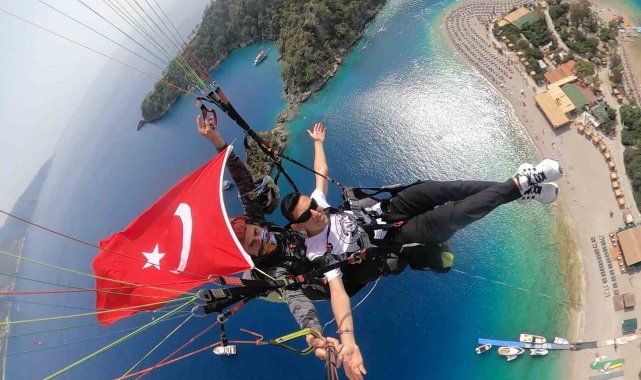 Fethiye'nin dünyaca ünlü Ölüdeniz sahilinde 19 Mayıs Atatürk'ü Anma, Gençlik ve Spor Bayramı, anlamına yakışır bir şekilde hem karada hem havada gerçekleştirilen etkinliklerle kutlandı. Ölüdeniz Mahallesi'ndeki Kumburnu Plajı'nda, organize edilen etkinlikler, renkli görüntülere sahne oldu. Etkinlik kapsamında plajda dev bir Türk bayrağı açıldı. Üzerinde "Cumhuriyet Fazilettir" yazılı bayrak, katılımcılar tarafından büyük alkış aldı. Ziyaretçiler ve vatandaşlar, bu anlamlı gösteriyi ilgiyle izledi. Etkinliklerin en dikkat çekici bölümlerinden biri ise gökyüzünde yaşandı. Öğrenciler, tecrübeli yamaç paraşütü pilotları eşliğinde Babadağ'dan gökyüzüne yükseldi. Uçuş sırasında açılan Türk bayrağı, gökyüzünde gururla dalgalandı.