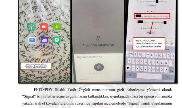 Örgüt mensuplarının gizli haberleşme yöntemi olarak kullandıkları "Signal" isimli haberleşme uygulamasını yoğun olarak kullandıkları, uygulamada muhtemel bir operasyon anında yakalanarak el koyulan telefonları üzerinde yapılan incelemelerde "Signal" isimli uygulamanın bulunmaması adına uygulamanın isminin ve logosunun değiştirildiği, belli aralıklarla silinen süreli mesajların bulunduğu tespit edildi.