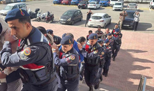 Jandarmada işlemleri tamamlanan 9 şüpheli adliyeye sevk edildi.