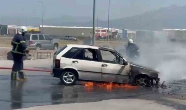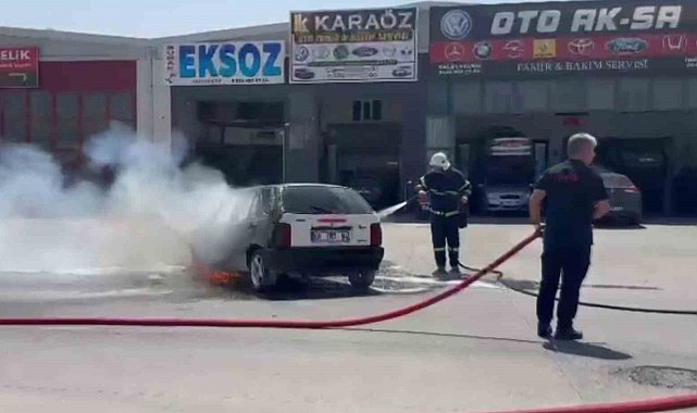 Aksaray'da Fiat marka otomobil egzozuna kaynak yapıldığı esnada alev alarak yandı. Alev topuna dönen otomobil itfaiye ekiplerince söndürüldü.