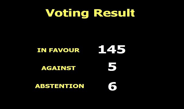 Birleşmiş Milletler (BM) Genel Kurulu, "Filistin Devleti'nin 80. oturuma katılımı" başlıklı oylamasında, ABD'nin vizesini iptal ettiği Filistin Devlet Başkanı Mahmud Abbas'ın gelecek hafta gerçekleştirilecek oturuma video konferans yoluyla katılmasına izin veren tasarıyı 145 oyla kabul etti.