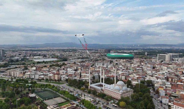 Bursa İl Müftülüğü tiyatro ekibi, Filistin'de yaşanan İsrail soykırımına dikkat çekmek için 15 metre uzunluğunda ve üzerinde Filistin ve Türkiye sembollerinin bulunduğu uçurtma uçurdu. Bayrağı göklerde gören herkes alkışlarla destek verdi.