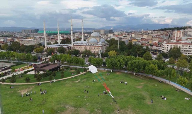 Bursa İl Müftülüğü Kültür Sanat tiyatro ekibi, İsrail'in Filistin halkına karşı yaptığı soykırıma dikkat geçmek için güzel bir çalışmaya imza attı. Binlerce kişinin bulunduğu Hüdavendigar Kent Parkında üzerinde Türk bayrağı ve Filistin haritası sembollerinin bulunduğu 15 metre uzunluğunda bir uçurtma uçurdu. Yapılan etkinlik parkta oturan vatandaşların dikkatini çekerken, uçurtmanın uçtuğu gören vatandaşlar da alkış tuttu.