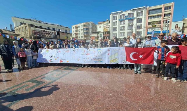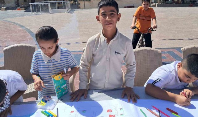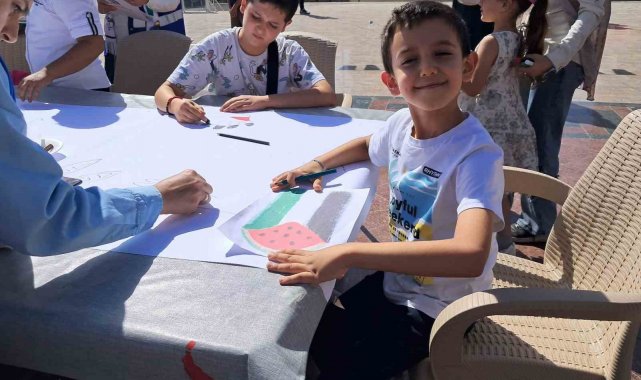 Gazze'de hayalleri yok edilen çocukların sesini duyurmak amacıyla düzenlenen "Filistinli Çocuklar İçin Çiz" etkinliğine onlarca çocuk katıldı.