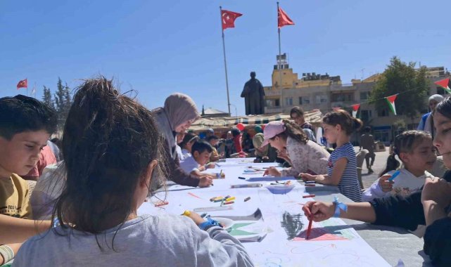 Kilis'te çocuklar, Gazze'deki yaşıtlarının sesini duyurmak için resimler çizerek, "Gazze'yi çok seviyoruz" mesajı verdi.