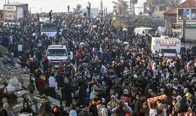 Gazze'de zorla yerinden edilen binlerce Filistinli, sevinç gözyaşlarıyla kuzeydeki evlerine dönüyor.