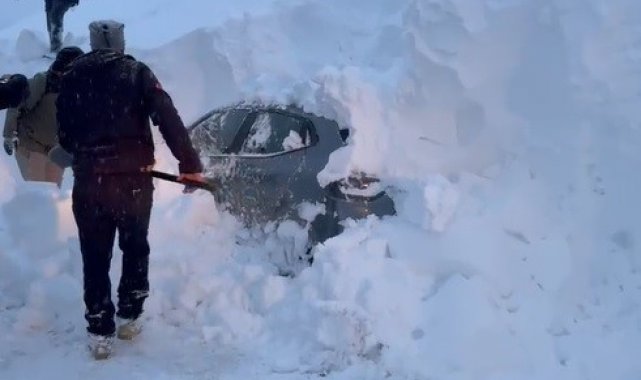 3 gündür aralıklı devam eden kar yağışı, kara saplanan aracın üzerini tamamen kapattı. Karın durmasıyla beraber bölgeye sevk edilen ekiplerce otomobil 3 günün sonunda tonlarca karın altından çıkarıldı.