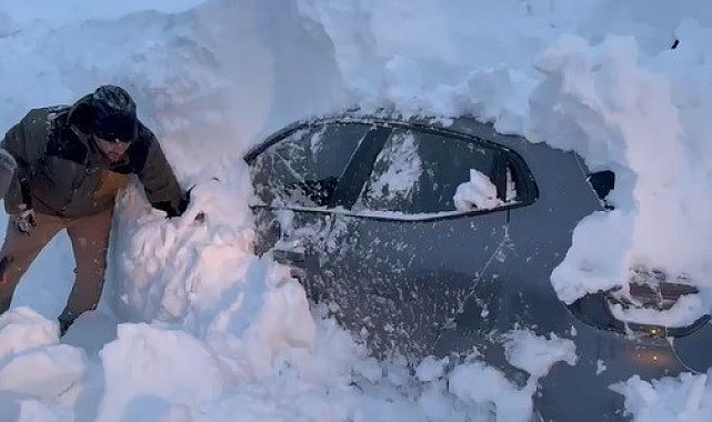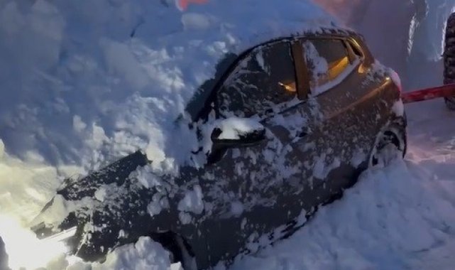 3 gündür aralıklı devam eden kar yağışı, kara saplanan aracın üzerini tamamen kapattı. Karın durmasıyla beraber bölgeye sevk edilen ekiplerce otomobil 3 günün sonunda tonlarca karın altından çıkarıldı.