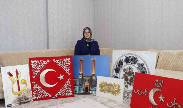 Erzurum'un Oltu ilçesinde yaşayan Elanur Akkuş, geleneksel sanatları modern dokunuşlarla harmanlayarak ortaya birbirinden değerli eserler çıkarıyor. Akkuş'un "filografi" ile "ehramı" bir araya getirdiği tablolar dikkat çekiyor.