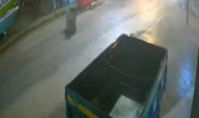 Finike'de hortumun römorku yerinden oynattığı anlar güvenlik kamerasında