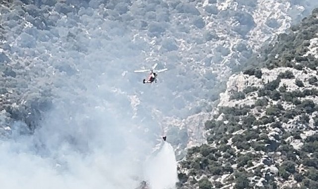 Antalya'nın Finike ilçesinde çıkan orman yangınına havadan ve karadan müdahalede bulunuluyor.