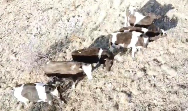 Nevşehir'de kaldıkları ahırın duvarını yıkarak firar eden inekler, jandarma ekipleri tarafından dron ile bulundu.