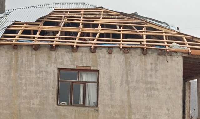 Hakkari'nin Akbulut köyünde etkili olan şiddetli yağmur ve fırtına, 5 aileye ait ev ve ahırlarda büyük hasara yol açtı.