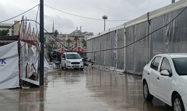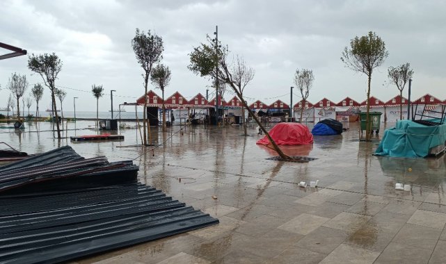 Sahilde şiddetli rüzgarla birlikte kırılan direğin çadırları uçurduğunu söyleyen esnaf Oğuzhan Gürbüz, "Akşamdan belliydi böyle olacağı. Antalya'da bile böyle bir rüzgar görmedim. Geldiğimizde akşam dondurmacılar ve konteynerler uçmuştu. Burası bize sürpriz oldu. Sabah geldiğimizde direk yıkılmış, çadırlar yırtılmıştı. Dün gece buraları toplayıp eve gittik, sabah bu manzarayla karşılaştık. Standı olan herkesin emekleri boşa gidiyor, denize uçanlar var, üzücü. Çok şiddetliydi, ben bile zor duruyordum" dedi.
