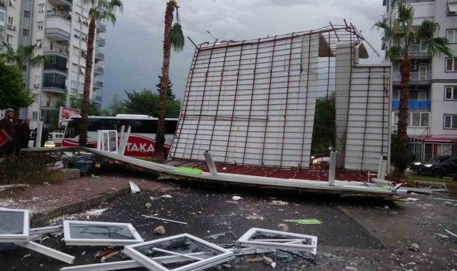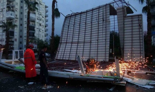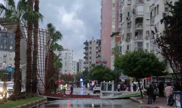 Antalya'da aniden bastıran ve yarım saat süren şiddetli yağış hayatı felç etti. Birçok noktada şiddetli rüzgar ve fırtına nedeniyle ağaçlar devrilirken. Güllük Caddesi üzerinde bulunan Kent Güvenliği Yönetim Sistemi'ne (KGYS) ait kameraların bulunduğu direk rüzgara dayanamayarak yola devrilip parçalandı. Perge Bulvarı üzerinde ise bir apartmanın çatısı uçtu. Tonlarca ağırlıktaki demir profil ve PVC malzemelerden yapılan çatı nedeniyle yol araç trafiğine kapanırken, olay anında yoldan geçen bir araç veya vatandaş olmadığı öğrenildi. Yola devrilen devasa boyutlardaki çatı nedeniyle yol çift yönlü olarak trafiğe kapatıldı.