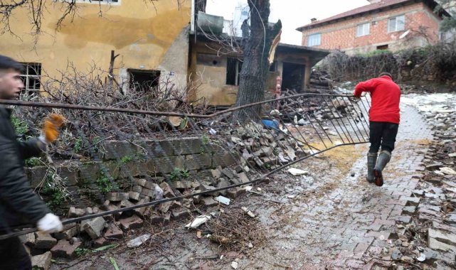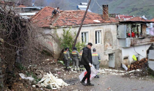 Fırtınanın ardından köylüler zarar gören evlerinin çatılarını kendi imkanlarıyla tamir etmeye çalışıyor.