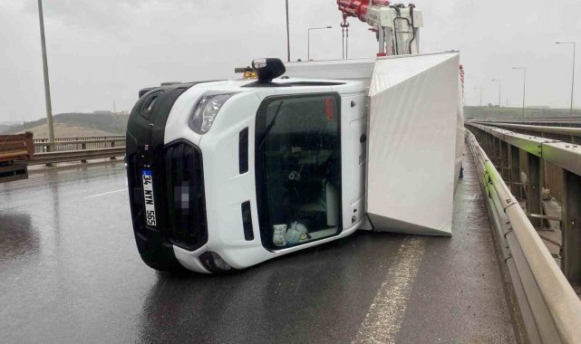 Kocaeli'de gece saatlerinden itibaren etkili olan fırtına, Kuzey Marmara Otoyolu'nda ulaşımda aksamalara yol açtı. Otoyolun Dilovası ilçesi geçişinde seyir halinde olan iki tır ve kamyonet, şiddetli rüzgarın etkisiyle kontrolden çıkarak devrildi. Kazalarda şans eseri yaralanan olmazken, kamyonetin devrildiği anlar güvenlik kamerasına yansıdı.