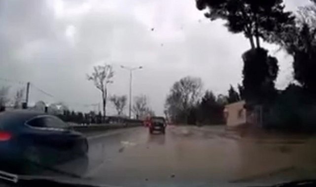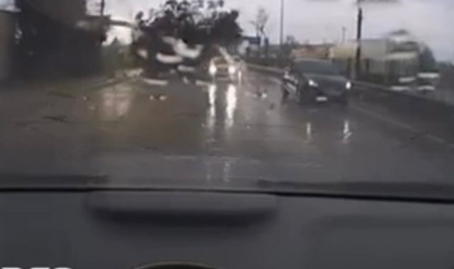 Mudanya yolunda seyreden sürücü kendisini uçan parçalardan güçlükle korudu. Aracın arka kamerasın yansıyan görüntülerde ana yolda kimsenin bulunmadığı bir sırada fırtınanın etkisiyle bir ağaç yola devrildi.