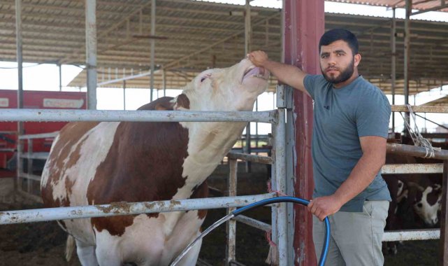 Reyhanlı ilçesi Yeşilova Mahallesi'nde besicilik yapan çiftçi İbrahim Yumuşak, dededen kalan besicilik mesleğini devam ettirerek ata mesleğini sürdürüyor. Hayvanları ve işini severek yapan Yumuşak, çiftliğinde 150 büyükbaş ve 8 bin küçükbaş hayvanıyla kurban bayramına hazırlanmış durumda. Besici Yumuşak'ın çiftliğin 'kralı' ve 'babası' olarak ifade ettiği 4 yaşındaki, bin 400 kilo ağırlığa sahip tosunsa onlarca hayvanın içerisinde çiftliğin gözdesi konumunda. Görenlere 'Maşallah' dedirten devasa tosun 420 bin TL'lik fiyatıyla alıcılarını bekliyor. Tosunu görmek için farklı bölgelerden vatandaşların çiftliğine geldiğini söyleyen Yumuşak, vatandaşların hayvanı gördüklerinde cüssesinden ve fiyatından dolayı ürktüklerini söyledi.